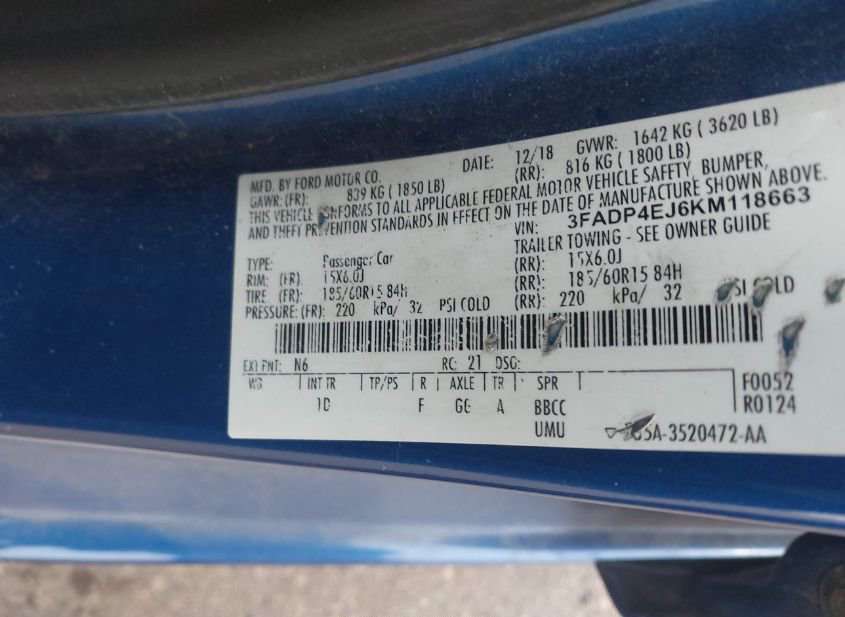 - VIN: 3FADP4EJ6KM118663