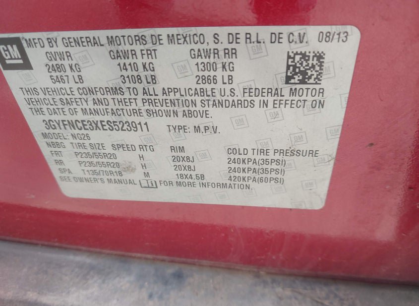 - VIN: 3GYFNCE3XES523911