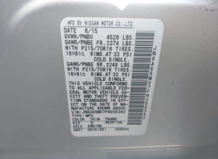 - VIN: JN8AS5MV7FW258382