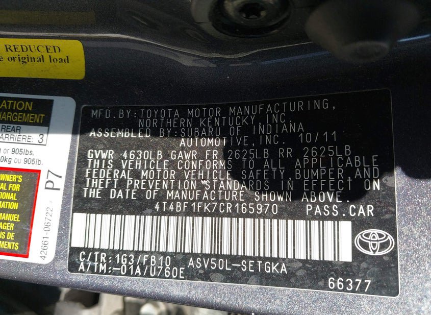 - VIN: 4T4BF1FK7CR165970