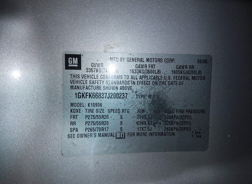 - VIN: 1GKFK66837J200237