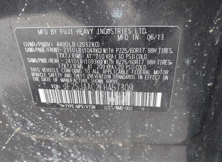 - VIN: JF2SJAAC2EH457309