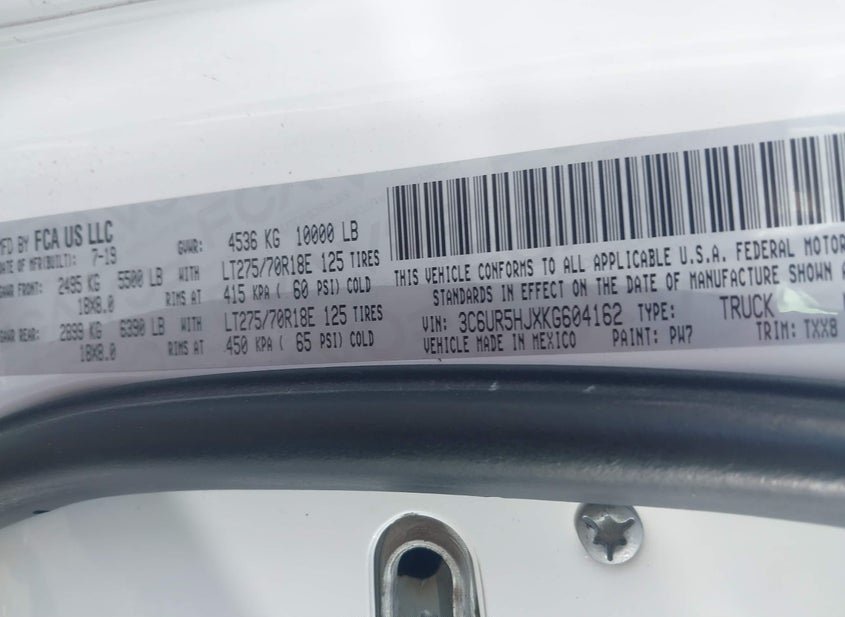 - VIN: 3C6UR5HJXKG604162