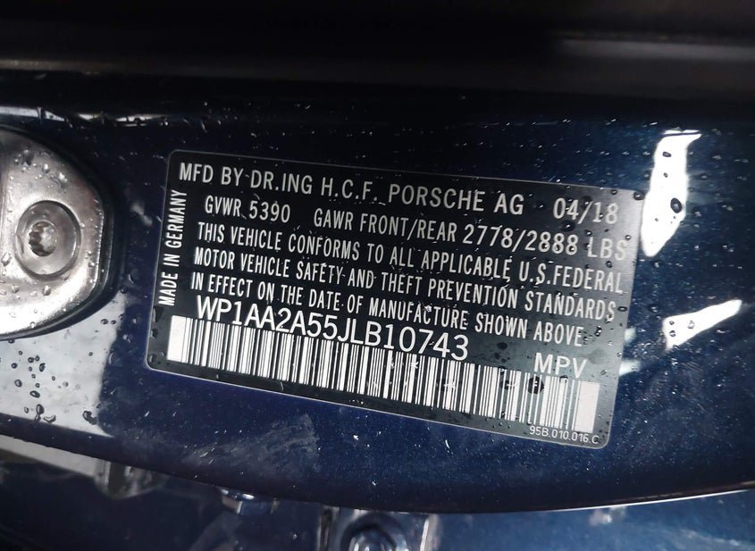 - VIN: WP1AA2A55JLB10743