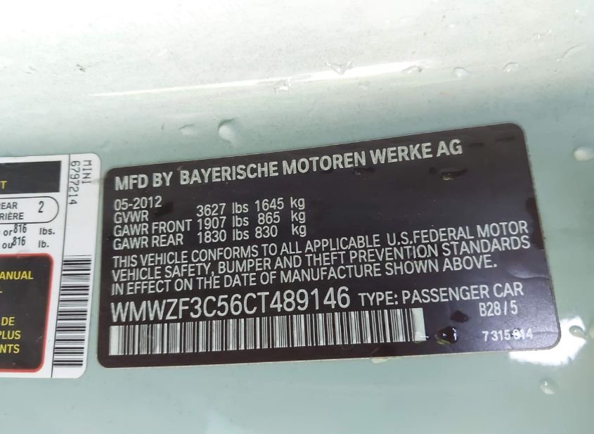 - VIN: WMWZF3C56CT489146