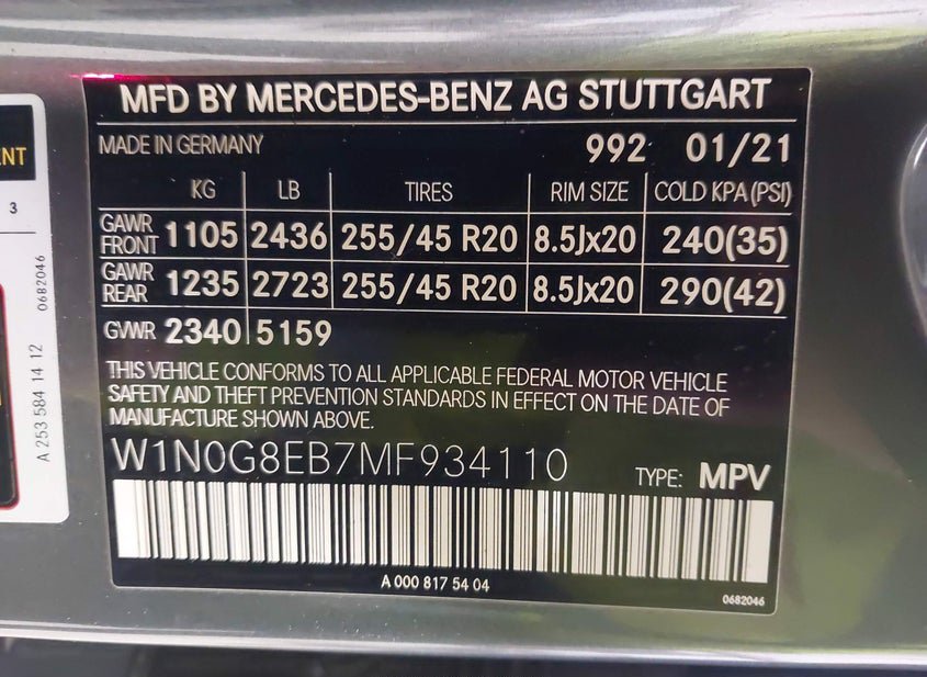 - VIN: W1N0G8EB7MF934110