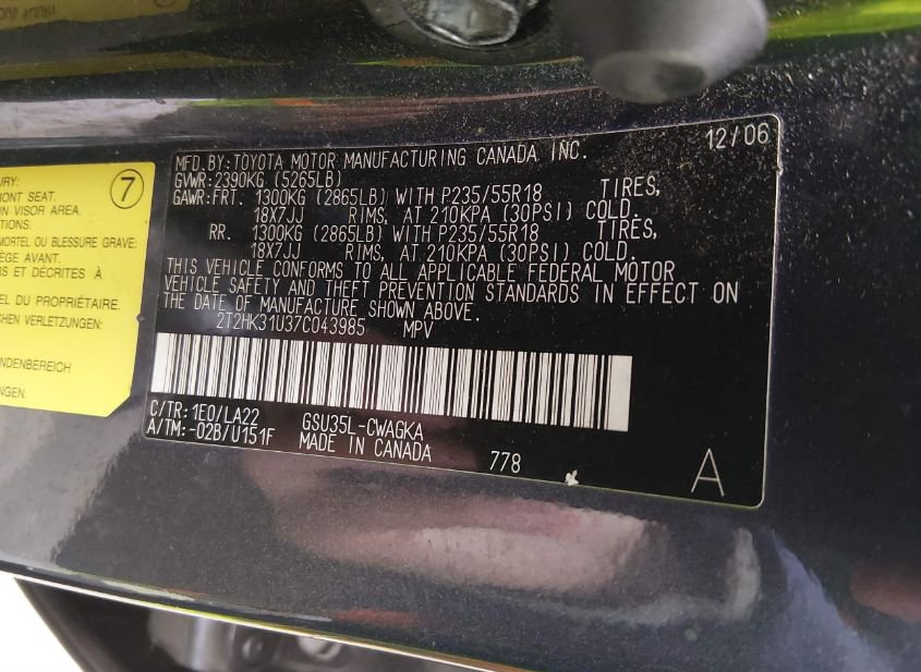 - VIN: 2T2HK31U37C043985