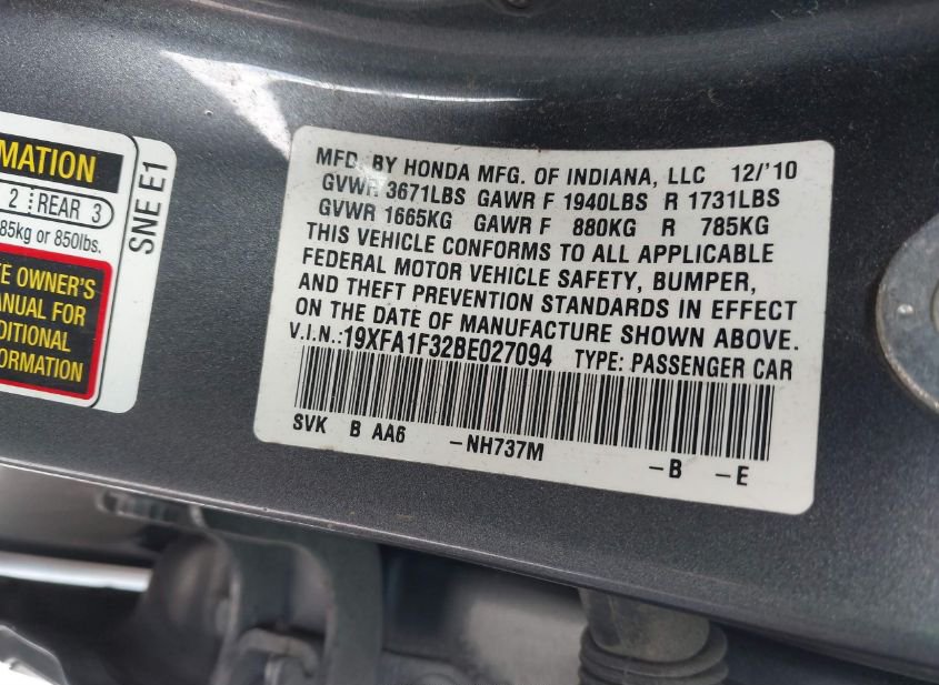 - VIN: 19XFA1F32BE027094