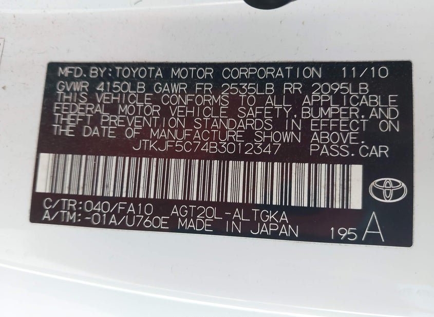 - VIN: JTKJF5C74B3012347