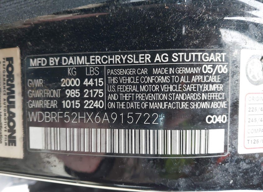 - VIN: WDBRF52HX6A915722