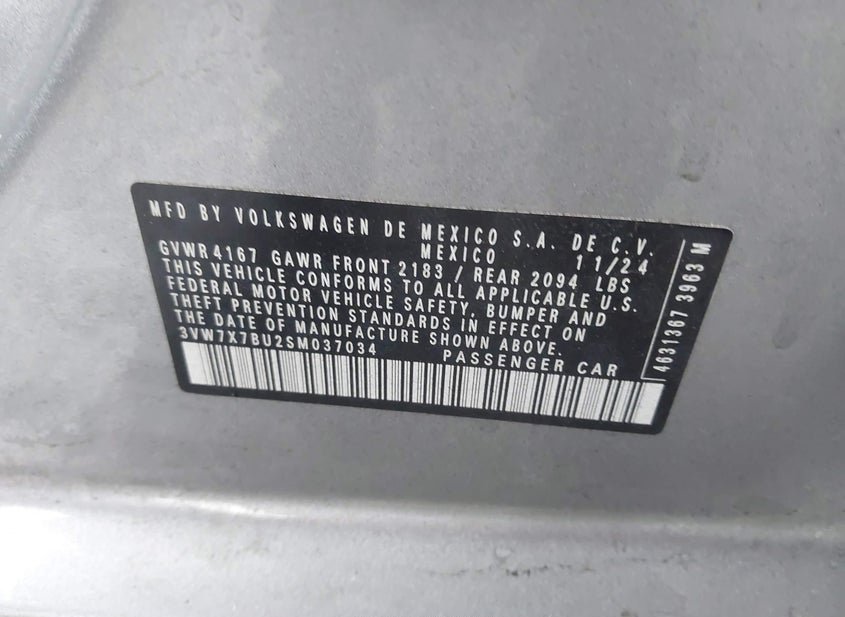 - VIN: 3VW7X7BU2SM037034
