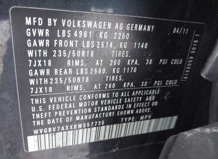 - VIN: WVGBV7AXXBW557735