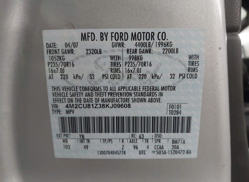 - VIN: 4M2CU81Z38KJ09608