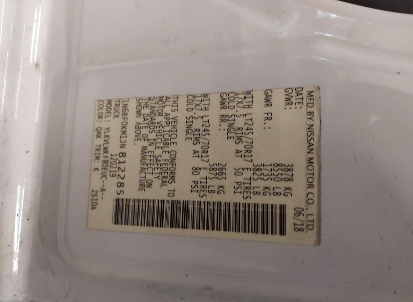 - VIN: 1N6BF0KM1JN812285