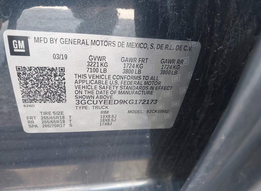- VIN: 3GCUYEED9KG172173