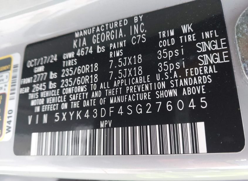 - VIN: 5XYK43DF4SG276045