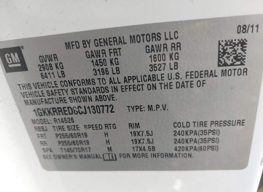 - VIN: 1GKKRRED8CJ130772