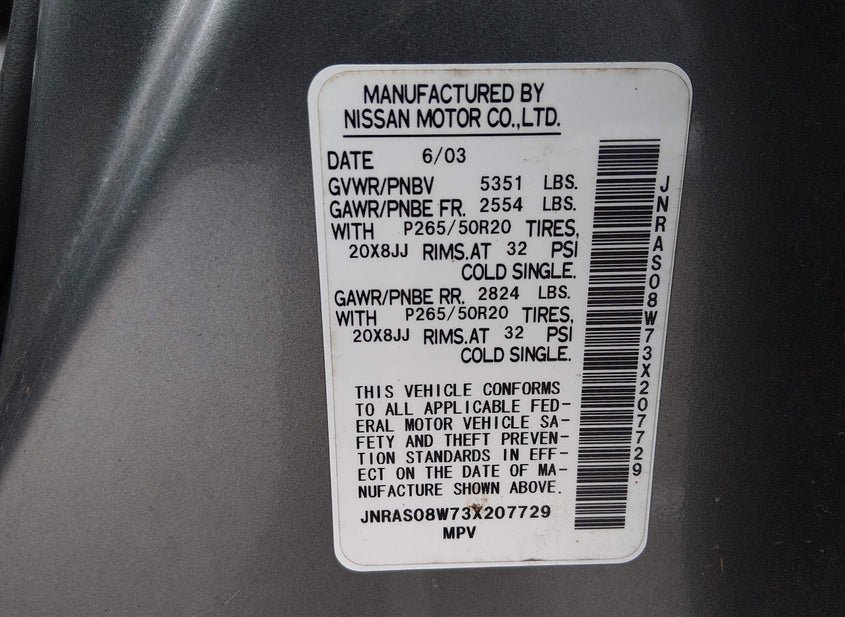 - VIN: JNRAS08W73X207729