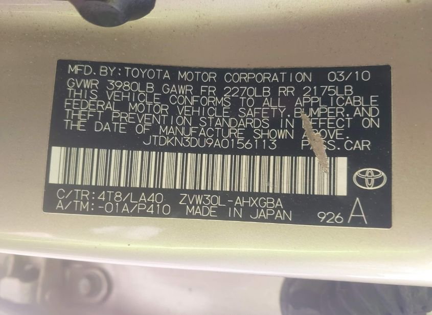 - VIN: JTDKN3DU9A0156113