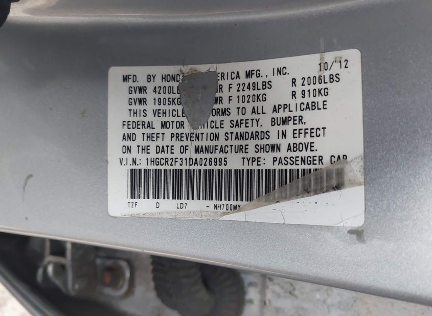 - VIN: 1HGCR2F31DA026995