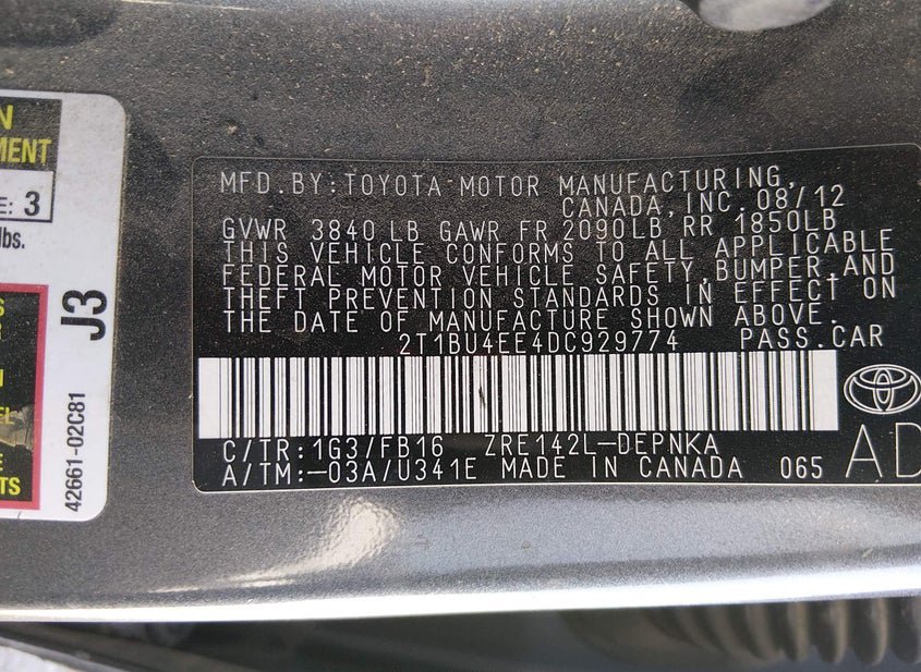 - VIN: 2T1BU4EE4DC929774