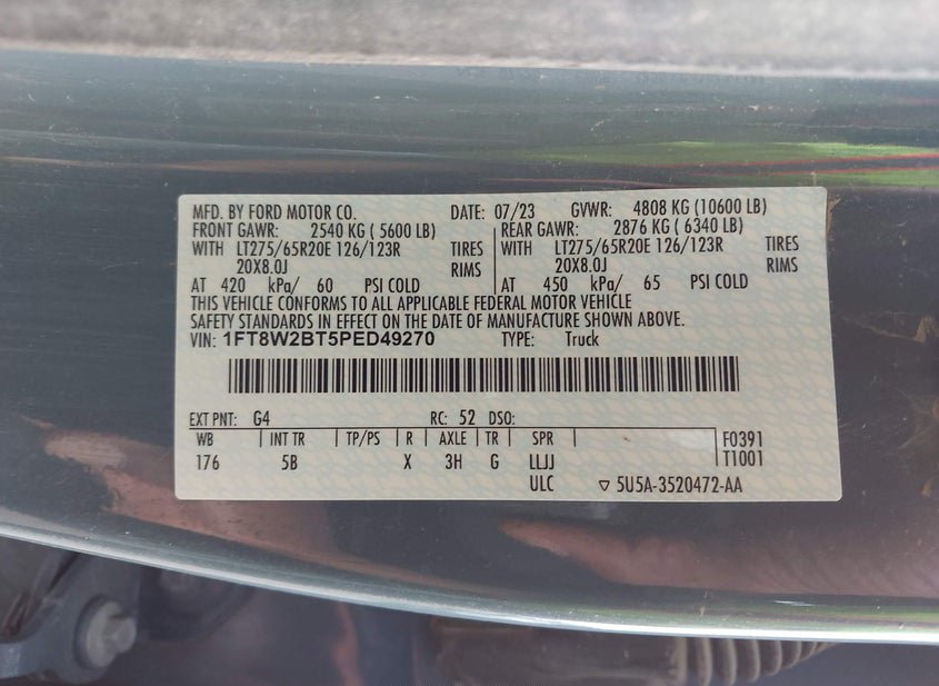 - VIN: 1FT8W2BT5PED49270
