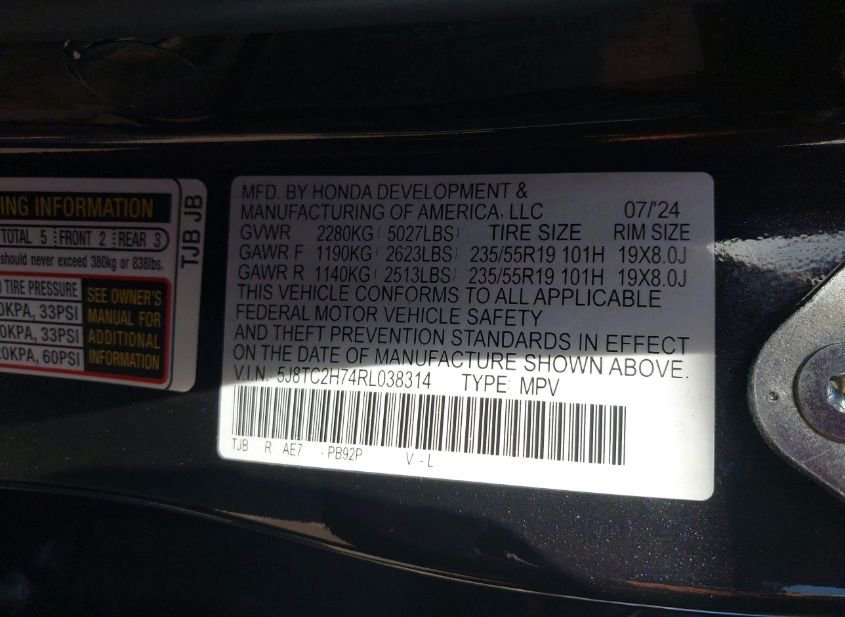 - VIN: 5J8TC2H74RL038314