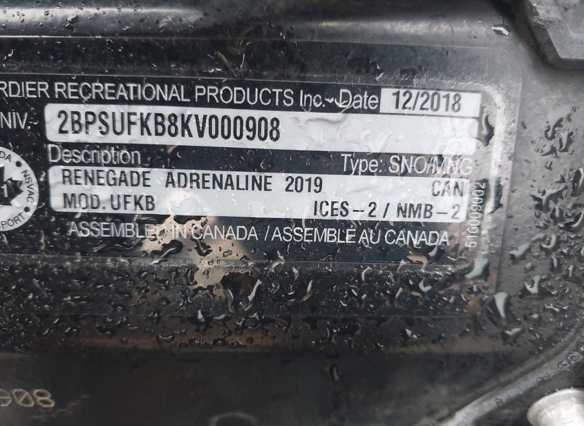 - Название лота: 2019 SKI DOO RENEGADE ADRENALINE 850