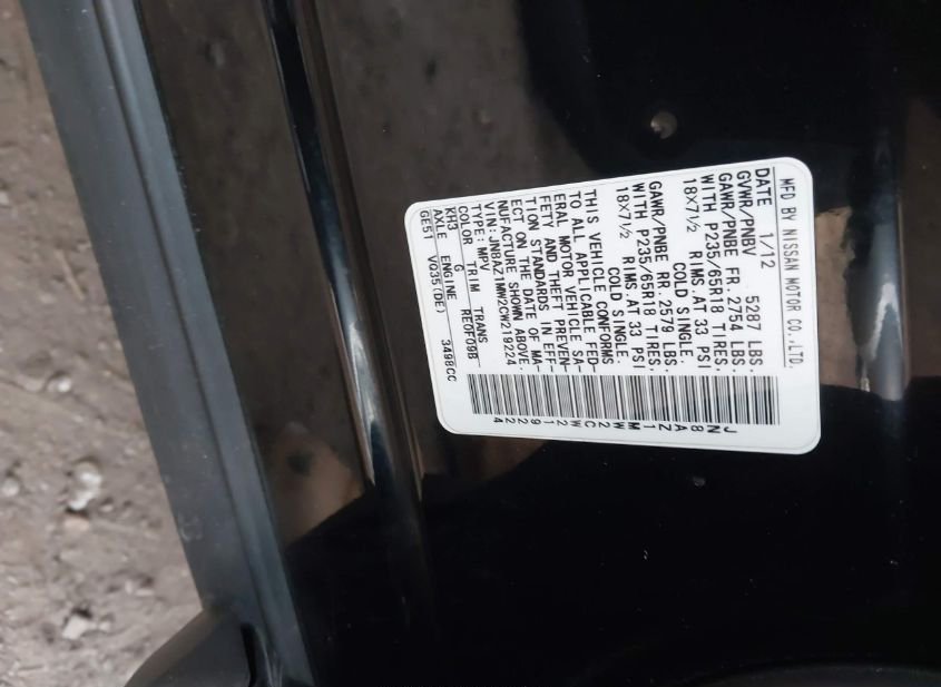 - VIN: JN8AZ1MW2CW219224