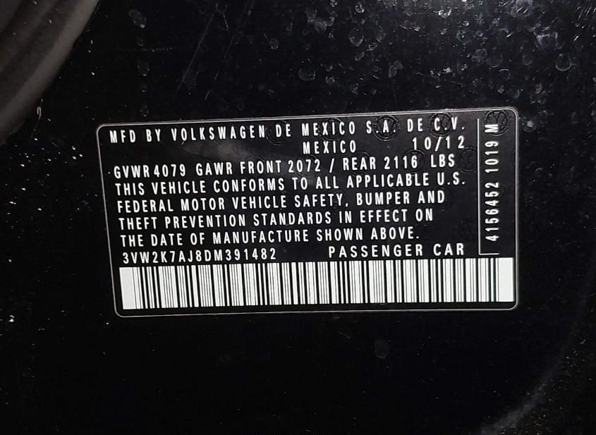 - VIN: 3VW2K7AJ8DM391482