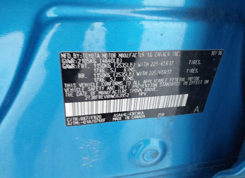 - Название лота: 2017 TOYOTA RAV4 LE