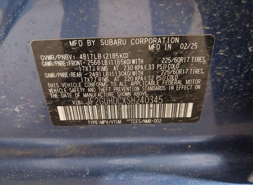 - Название лота: 2025 SUBARU CROSSTREK PREMIUM