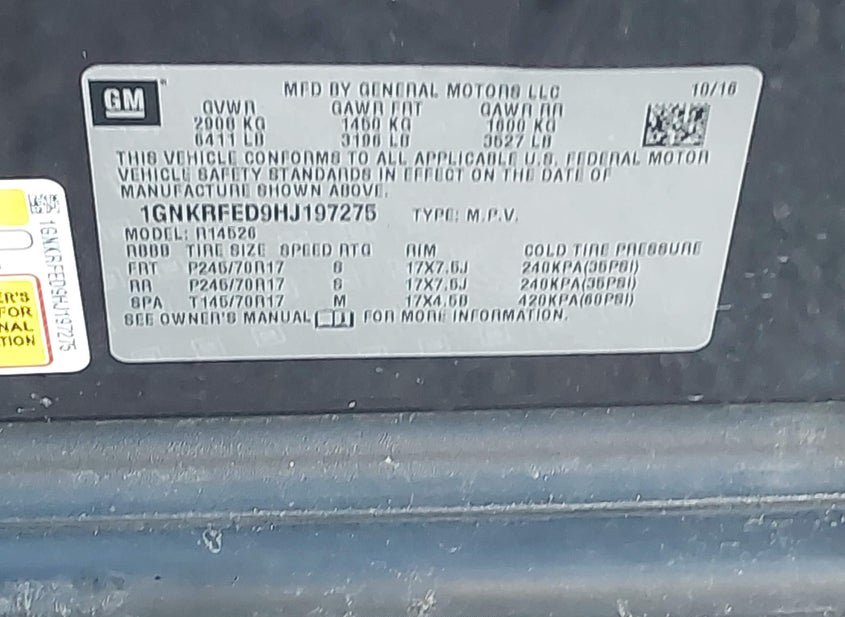 - VIN: 1GNKRFED9HJ197275