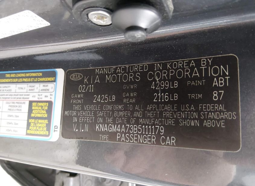 - VIN: KNAGM4A73B5111179
