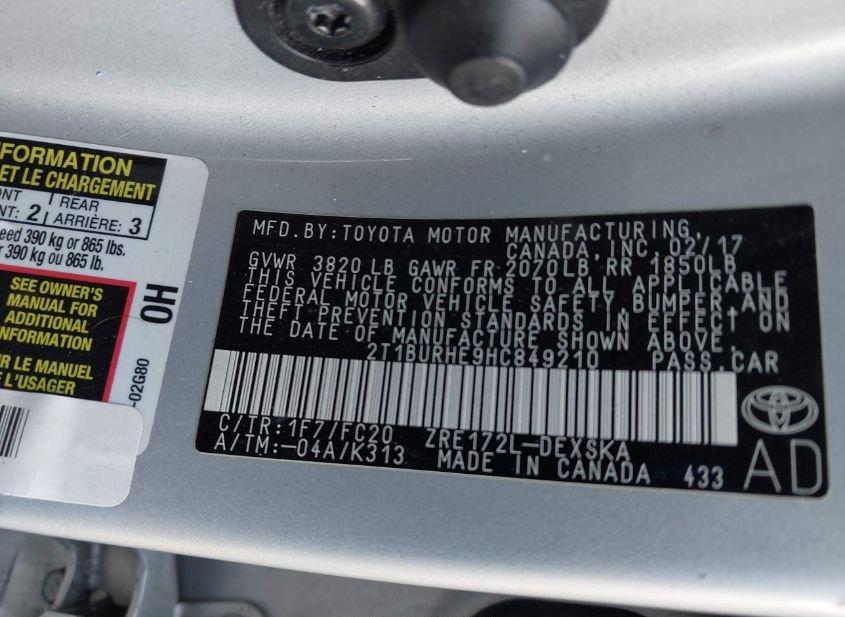 - VIN: 2T1BURHE9HC849210
