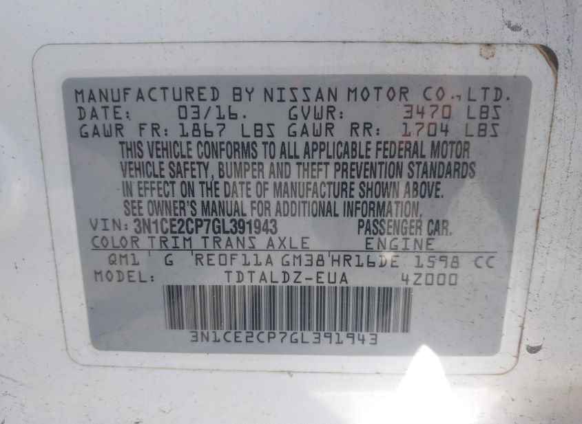 - VIN: 3N1CE2CP7GL391943