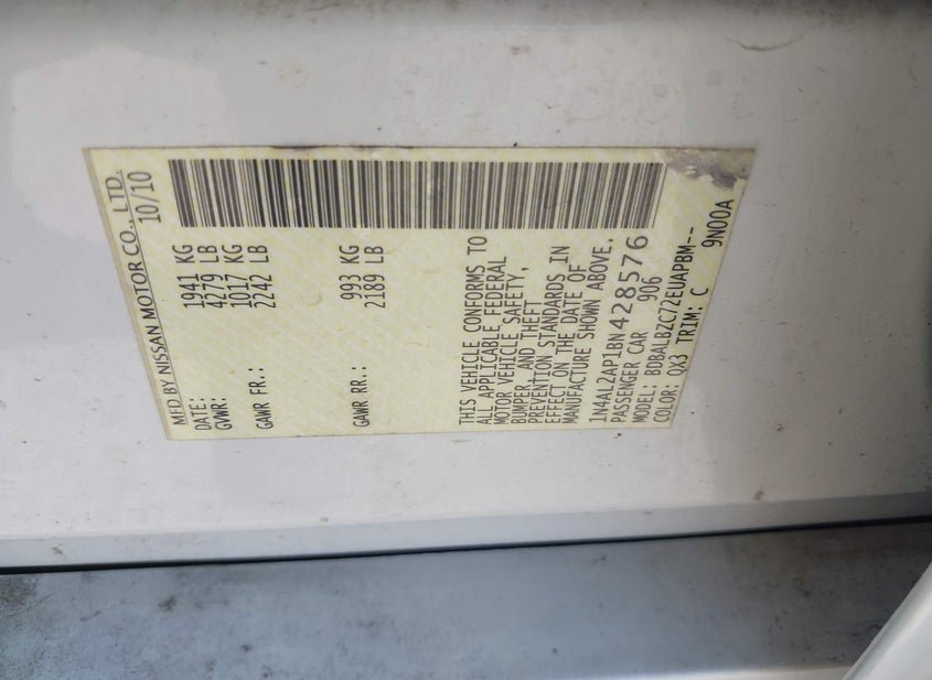 - VIN: 1N4AL2AP1BN428576