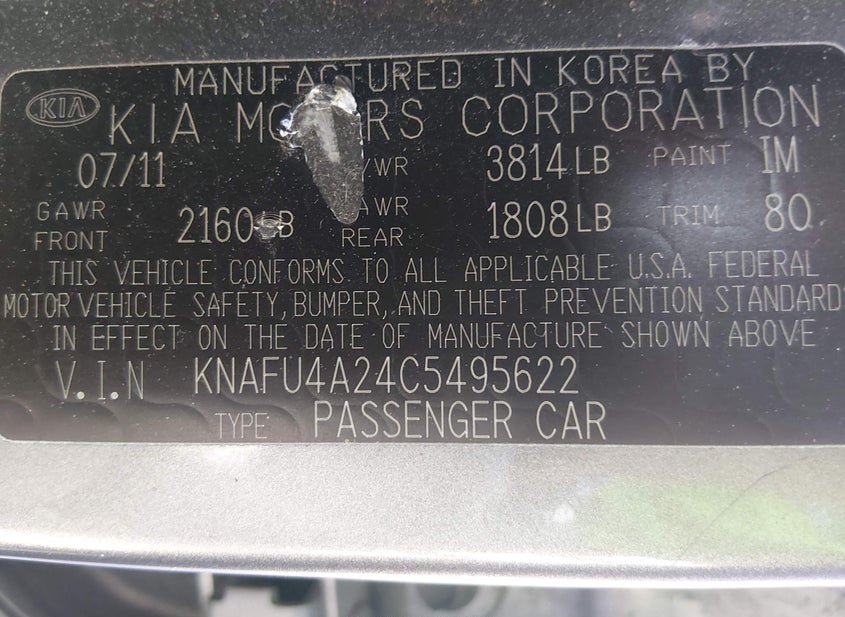 - VIN: KNAFU4A24C5495622