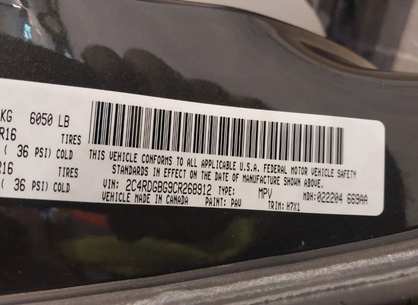 - VIN: 2C4RDGBG9CR268912