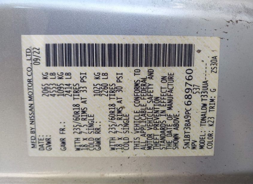 - VIN: 5N1BT3BA9PC689760