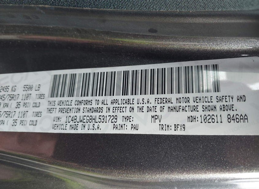 - VIN: 1C4BJWEG8HL531729