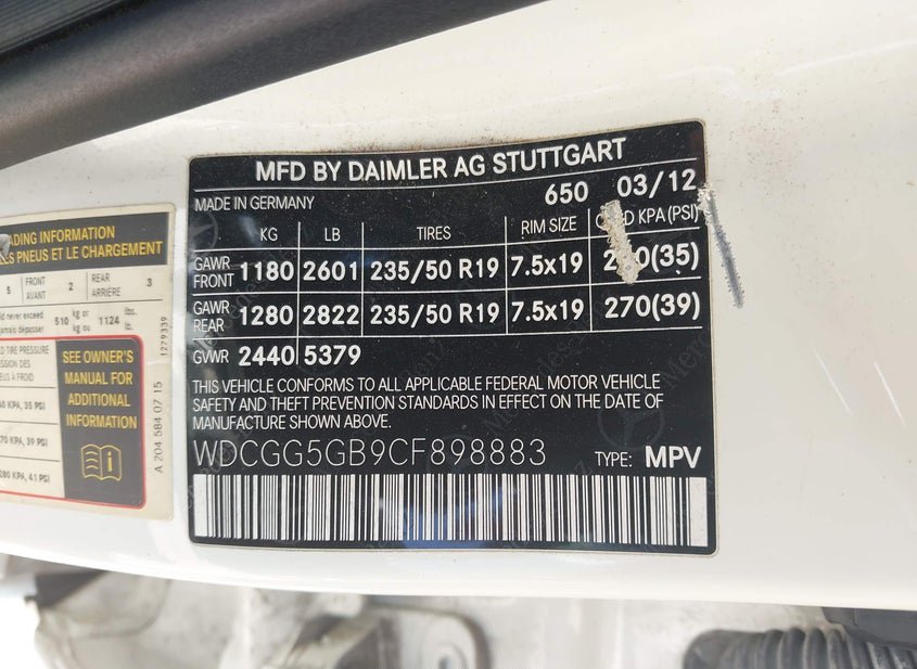 - VIN: WDCGG5GB9CF898883