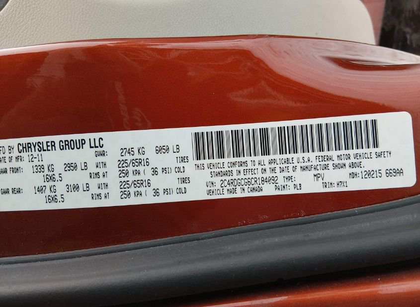 - VIN: 2C4RDGCG6CR184092