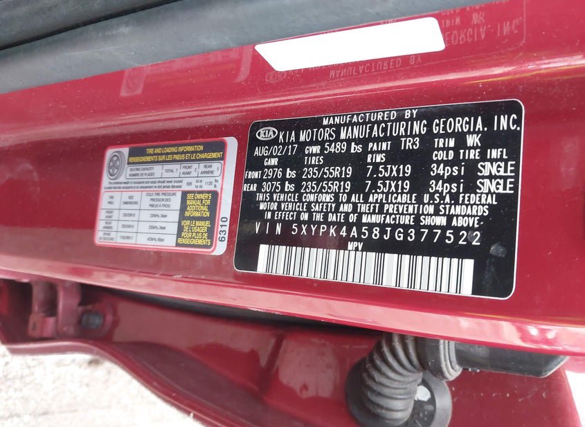 - VIN: 5XYPK4A58JG377522