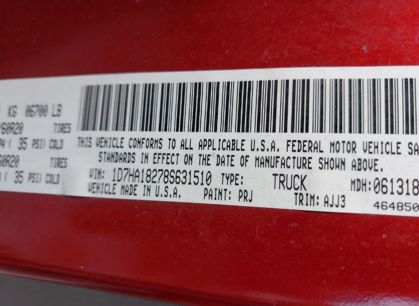 - VIN: 1D7HA18278S631510