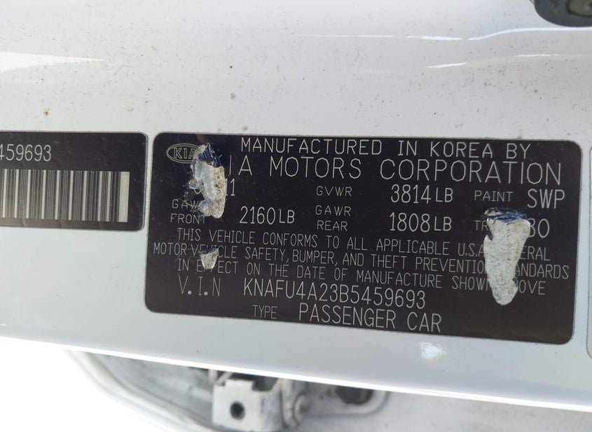 - VIN: KNAFU4A23B5459693