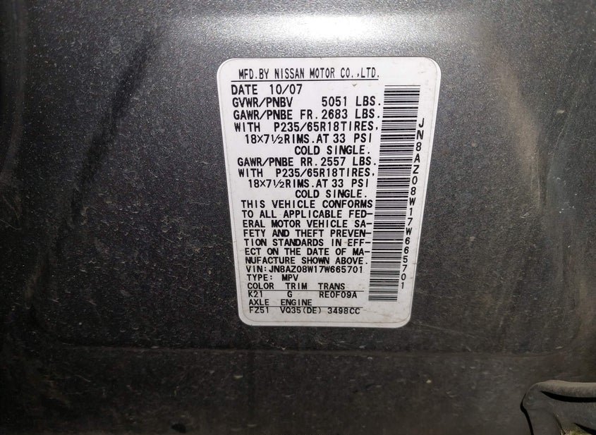 - VIN: JN8AZ08W17W665701