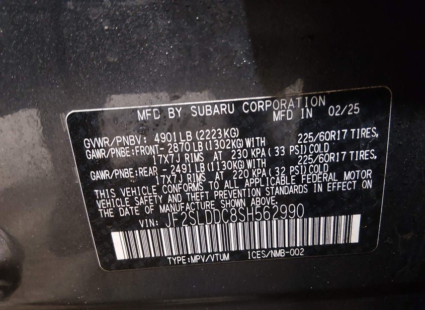 - VIN: JF2SLDDC8SH562990
