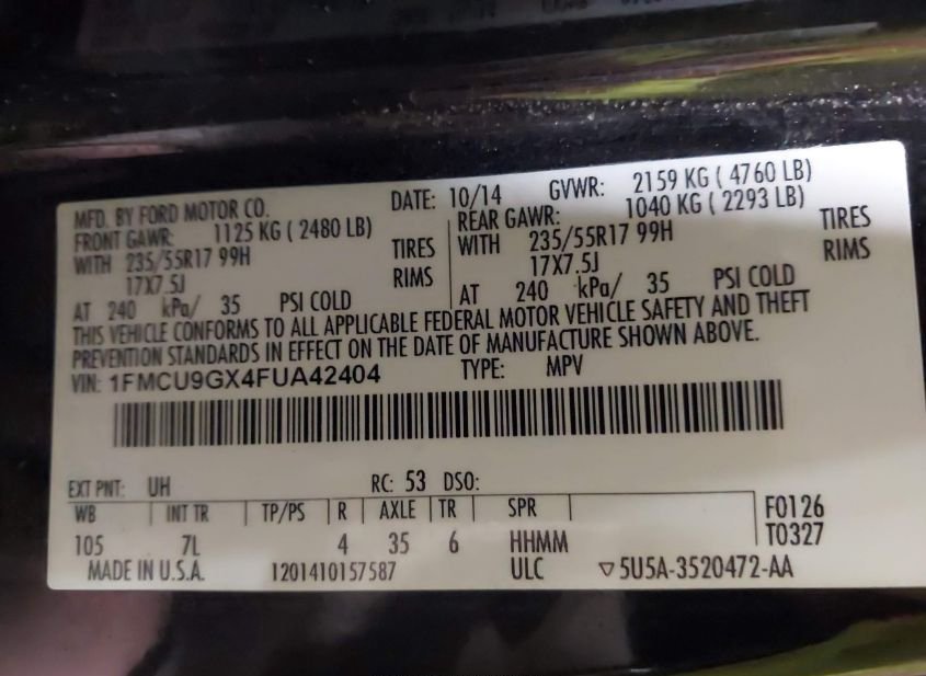 - VIN: 1FMCU9GX4FUA42404