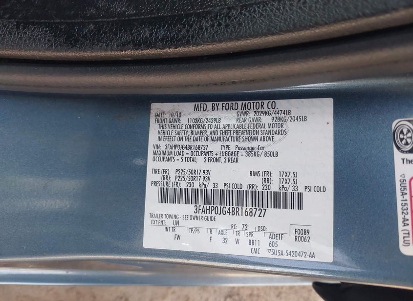 - VIN: 3FAHP0JG4BR168727